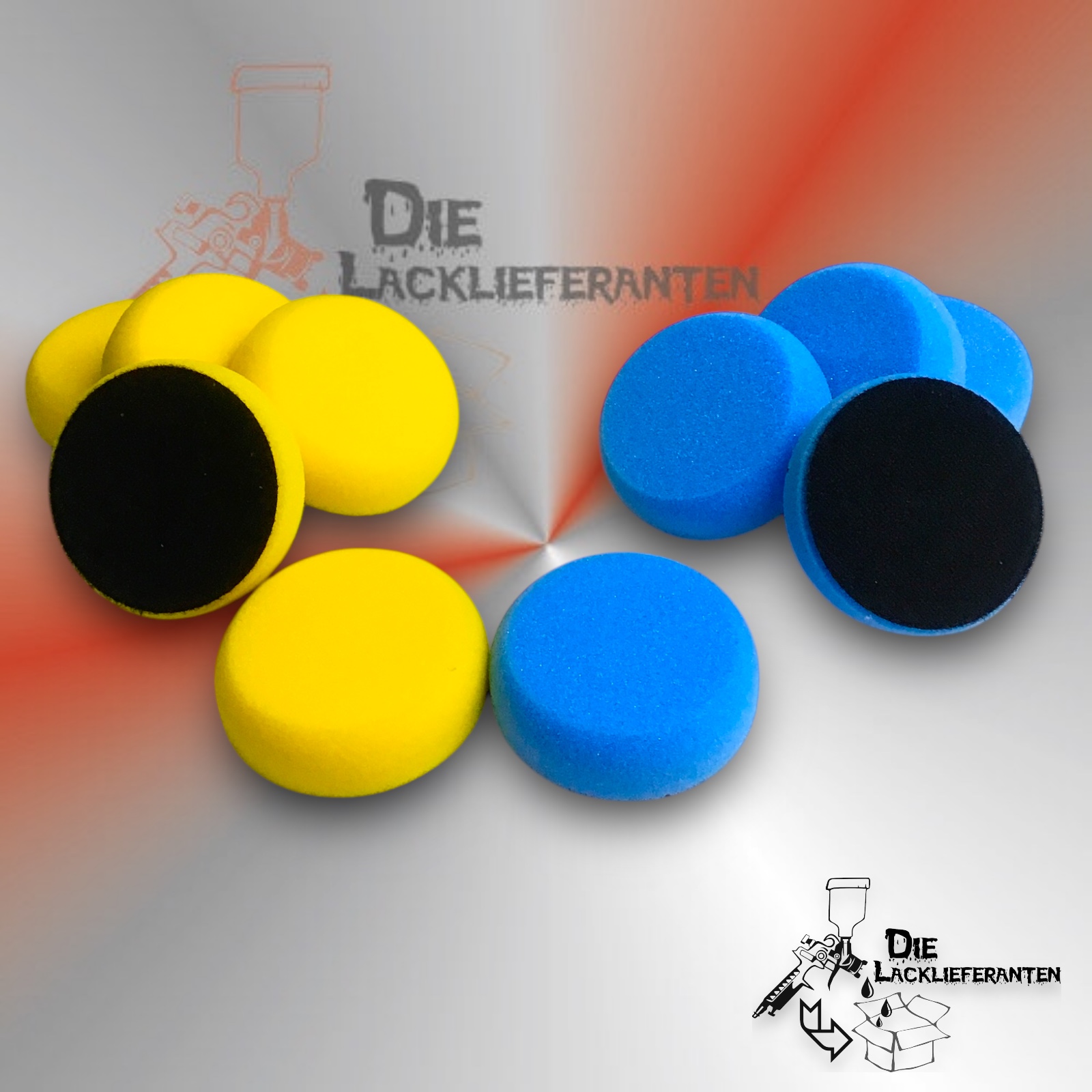 10X Polierschwamm ∅ 75mm Gelb Mittel-Hart + Blau Hart mit Klett