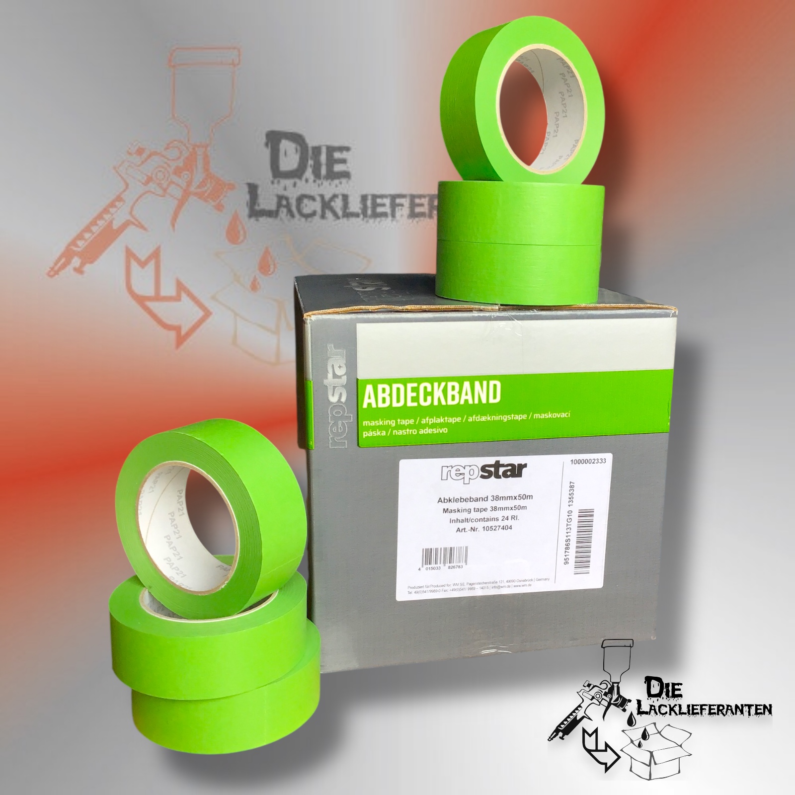 24x Repstar Klebeband Grün , Abdeckband 100°C 1 Rolle á 38mm x 50m #6660084