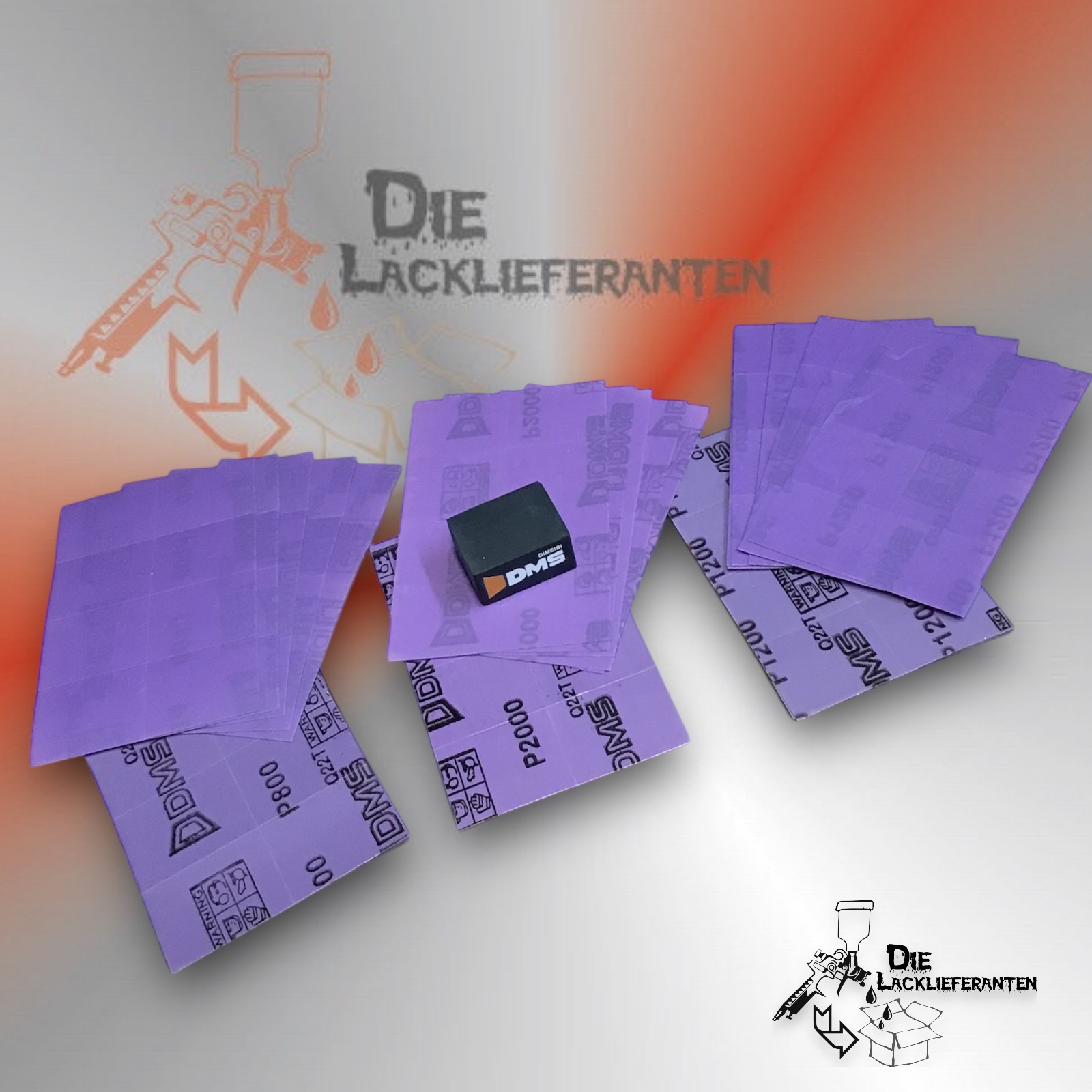 DMS Finecut Schleifblüte P800/P1200/P2000 – 3x je 25 Bögen(je Bogen 8 Blüten) rechteckig 26 x 33mm + 1x Schleifblock