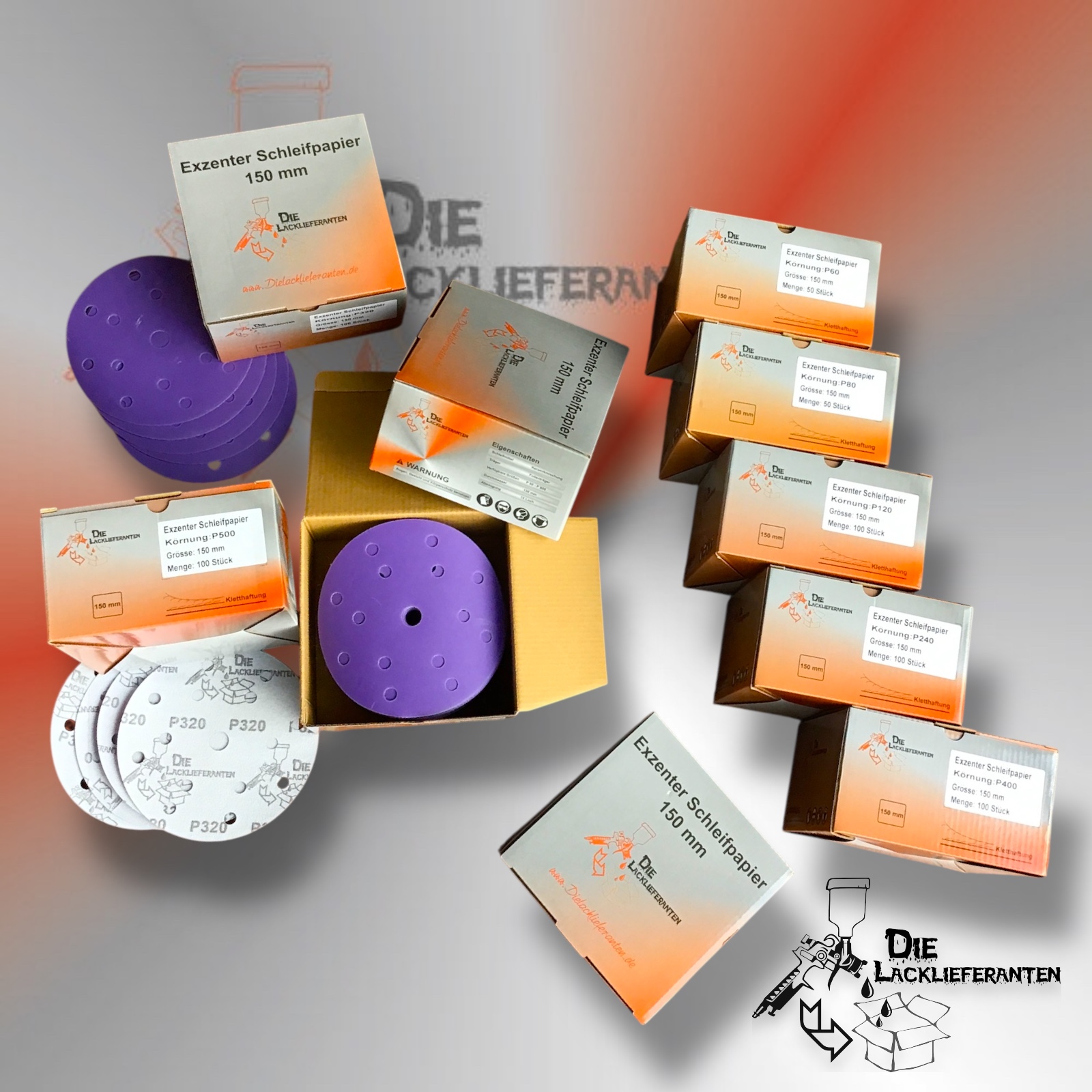 Zzgl. 20% MwSt.zzgl. Versand10+1 Exzenter Schleifpapier / Klett-Schleifscheibe Gemischte Tüte P60-P500 Ø 150mm Folienträger, 15 Loch Absaugung, Schleifkorn Keramikmischung #Q22T150MIX