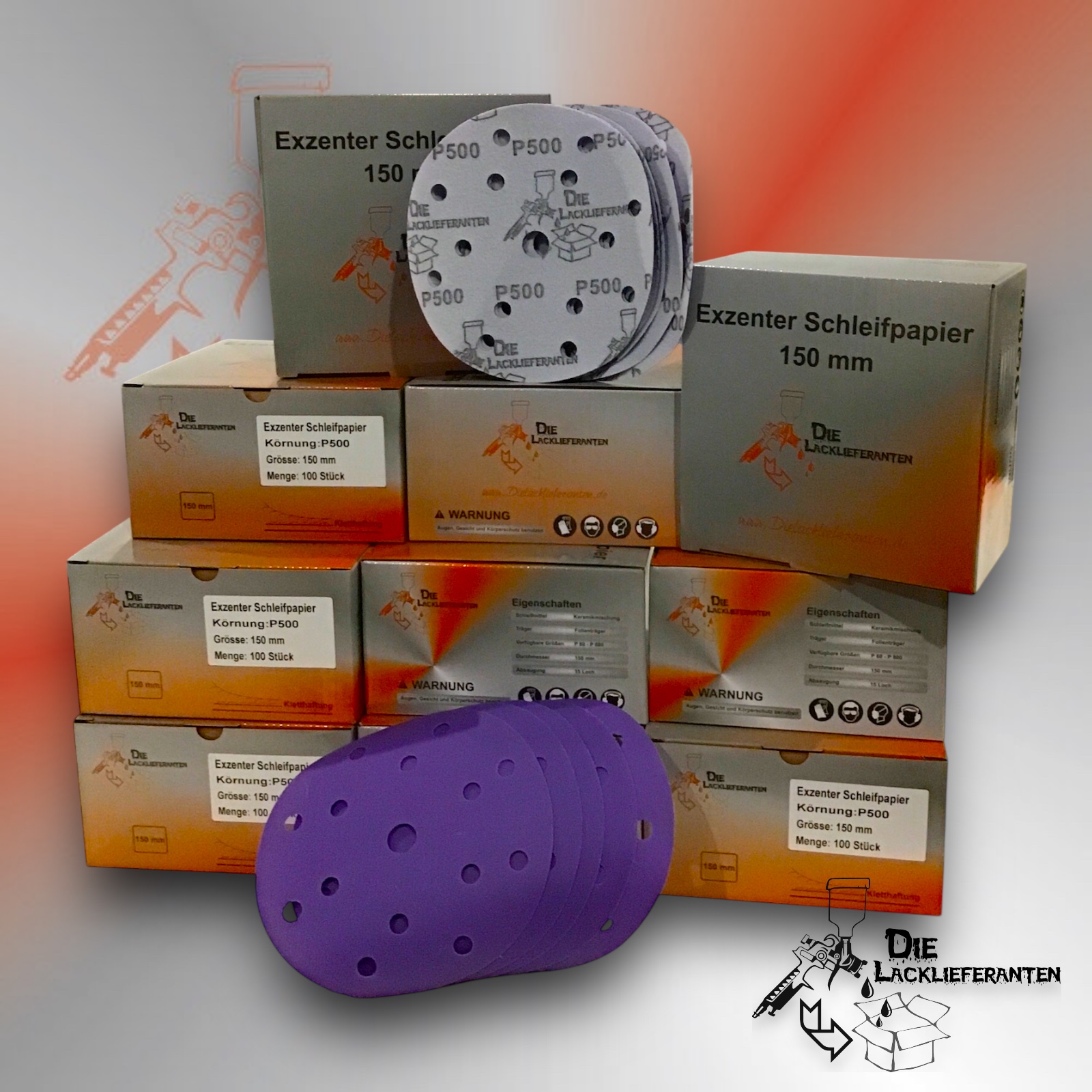 Zzgl. 20% MwSt.zzgl. Versand1000X Exzenter Schleifpapier / Klett-Schleifscheibe P500 Ø 150mm Folienträger, 15 Loch Absaugung, Schleifkorn Keramikmischung #Q22T150P500