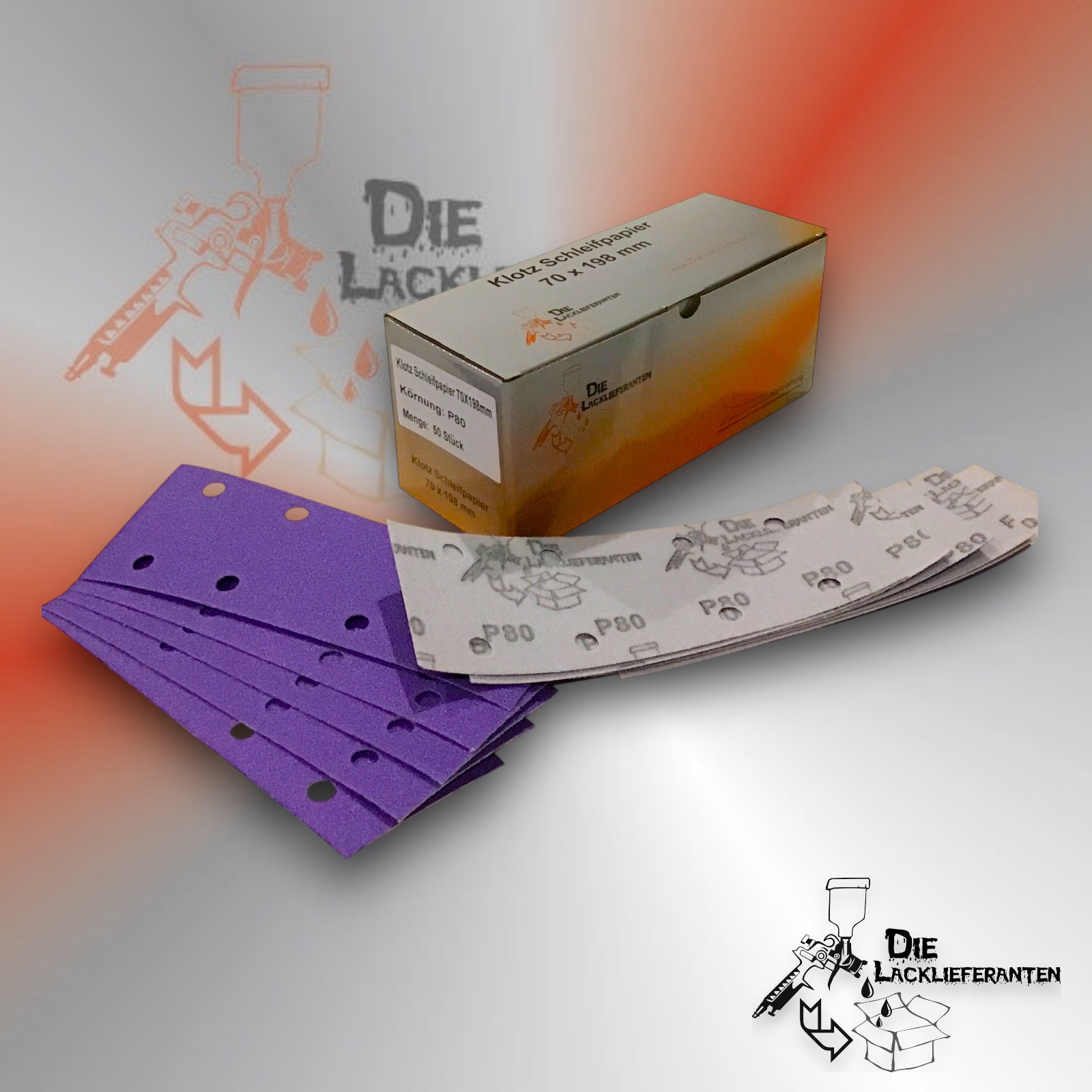 -16%150X Klotz Schleifpapier / Klett-Schleifstreifen P80 70x198mm Folienträger, 8 Loch Absaugung, Schleifkorn Keramikmischung #Q22T70X198P80