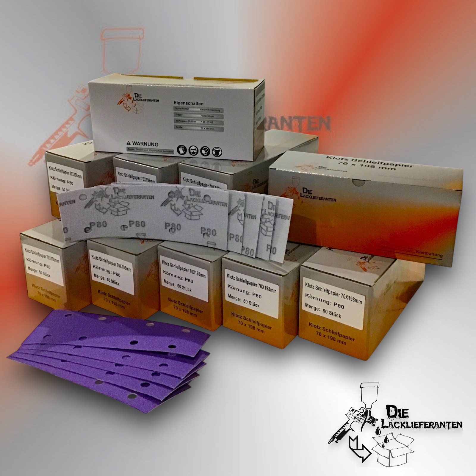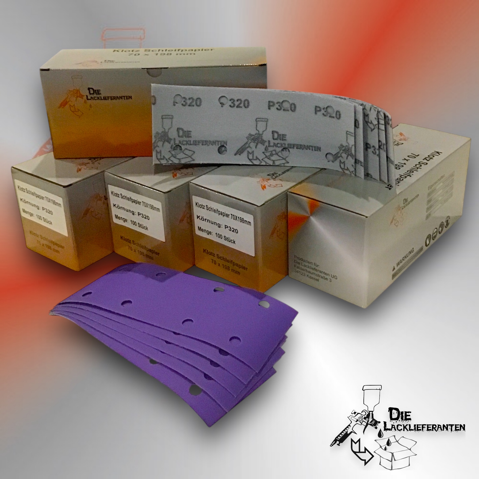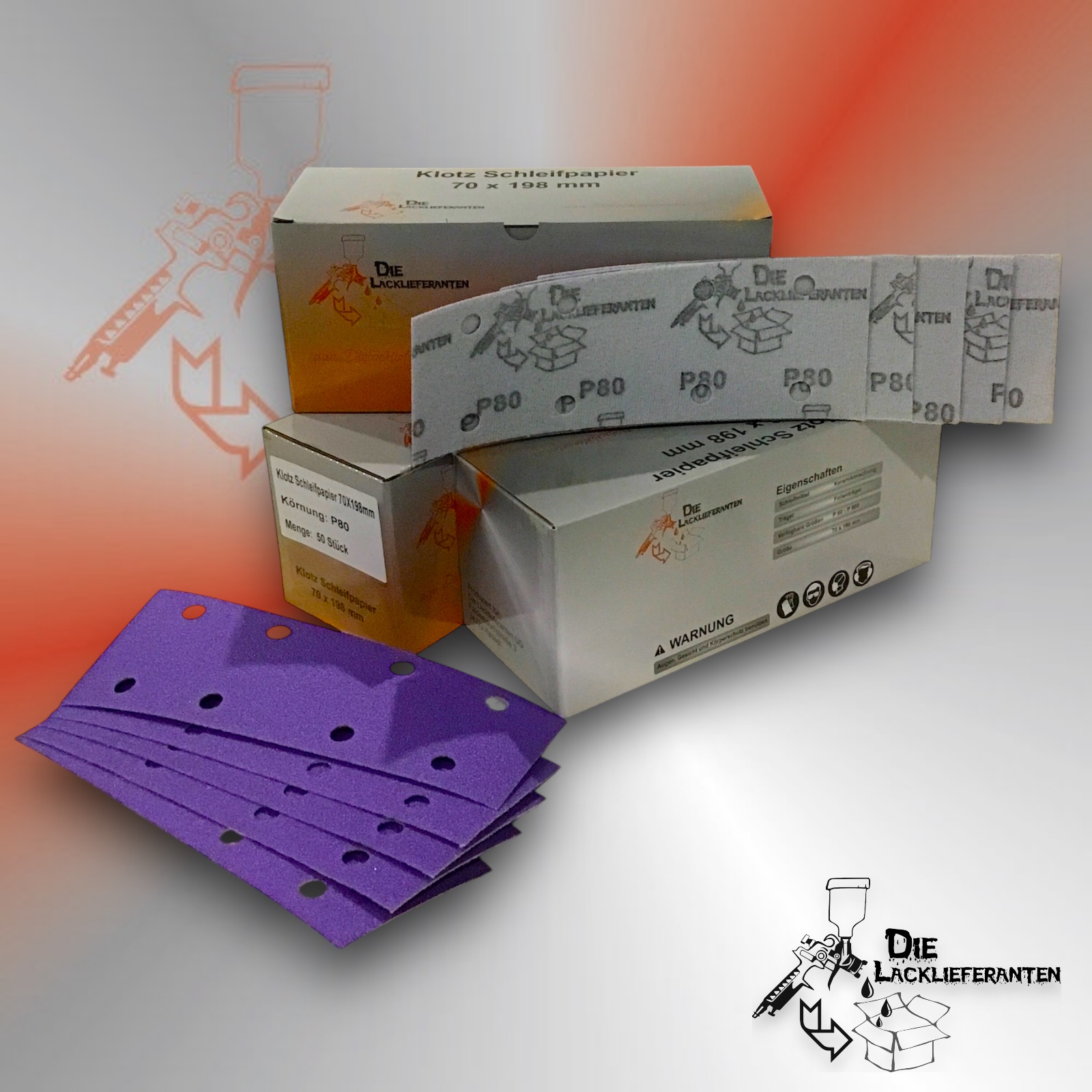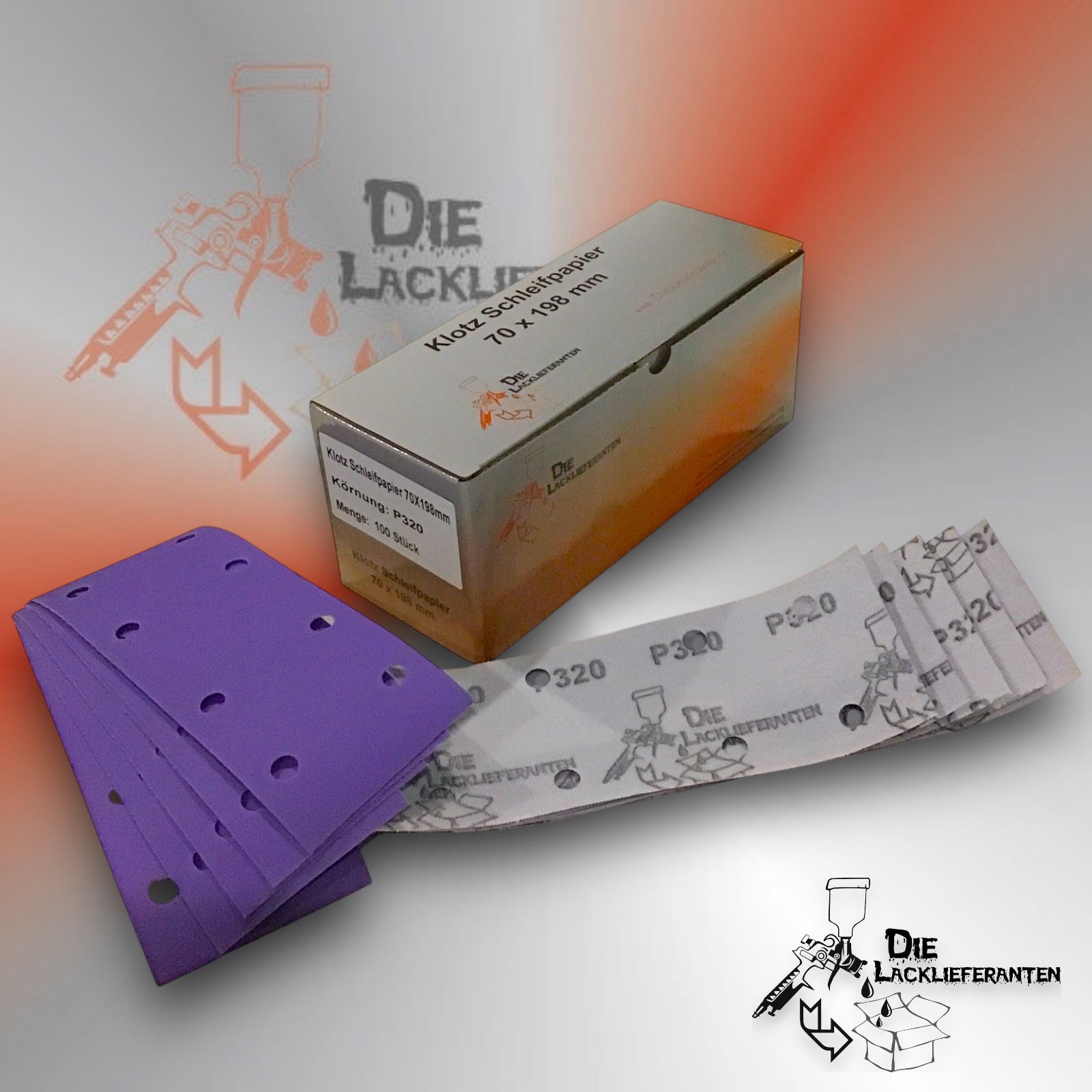 Zzgl. 20% MwSt.zzgl. Versand100X Klotz Schleifpapier / Klett-Schleifstreifen P320 70x198mm Folienträger, 8 Loch Absaugung, Schleifkorn Keramikmischung #Q22T70X198P320