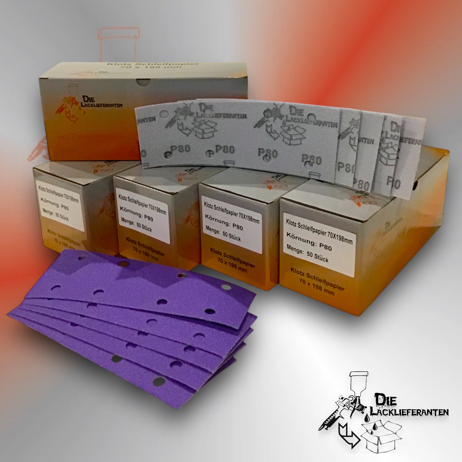 Zzgl. 20% MwSt.zzgl. Versand50X Klotz Schleifpapier / Klett-Schleifstreifen P80 70x198mm Folienträger, 8 Loch Absaugung, Schleifkorn Keramikmischung #Q22T70X198P80