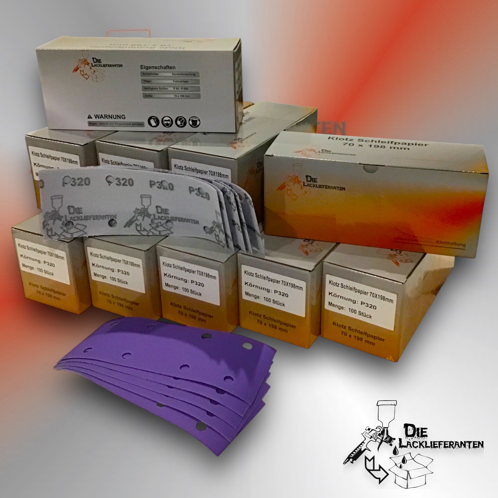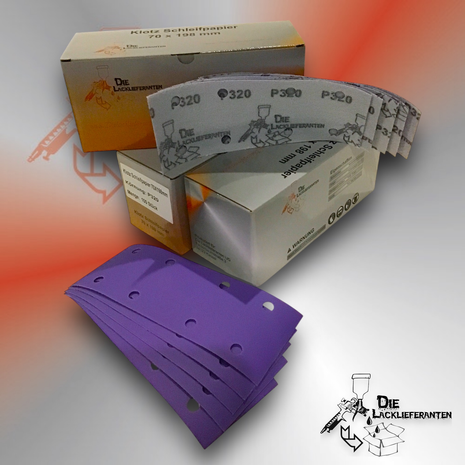 Zzgl. 20% MwSt.zzgl. Versand1000X Klotz Schleifpapier / Klett-Schleifstreifen P320 70x198mm Folienträger, 8 Loch Absaugung, Schleifkorn Keramikmischung #Q22T70X198P320