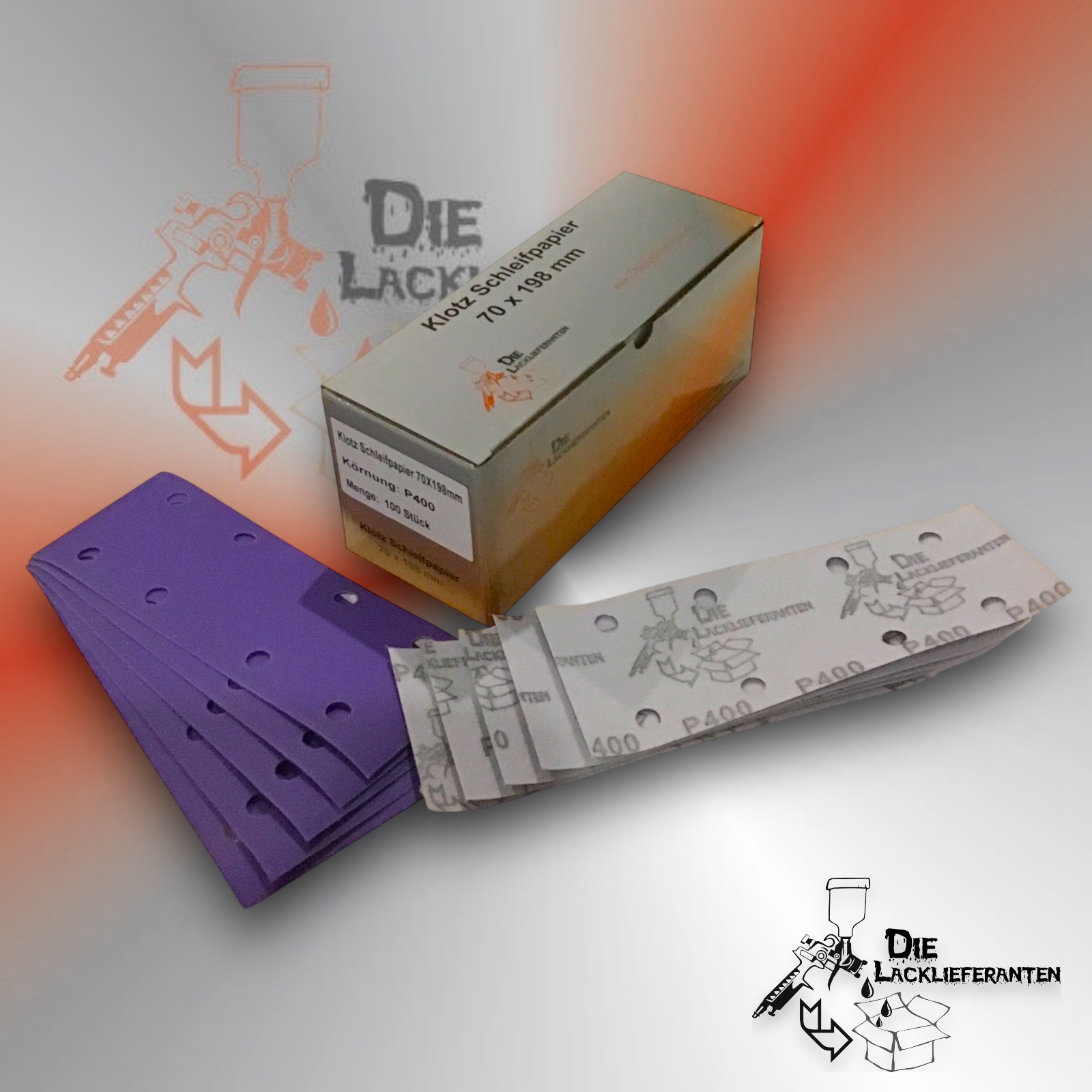 Zzgl. 20% MwSt.zzgl. Versand100X Klotz Schleifpapier / Klett-Schleifstreifen P400 70x198mm Folienträger, 8 Loch Absaugung, Schleifkorn Keramikmischung #Q22T70X198P400