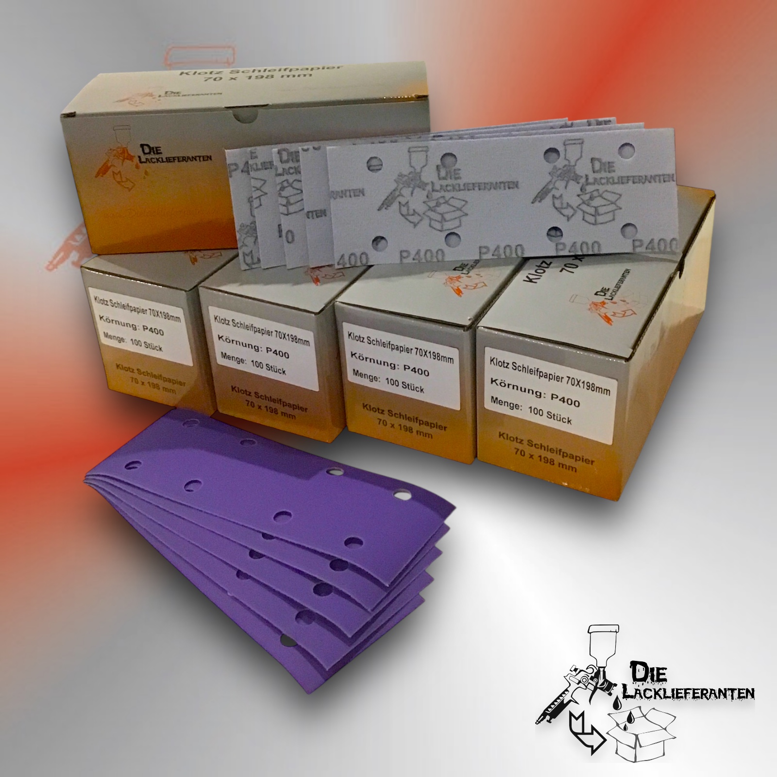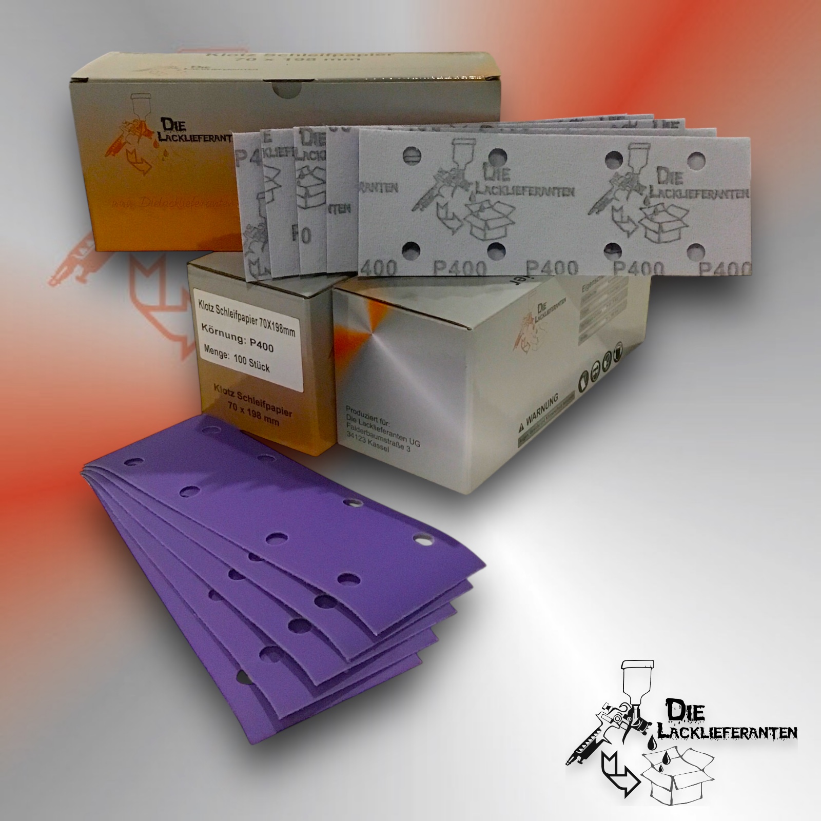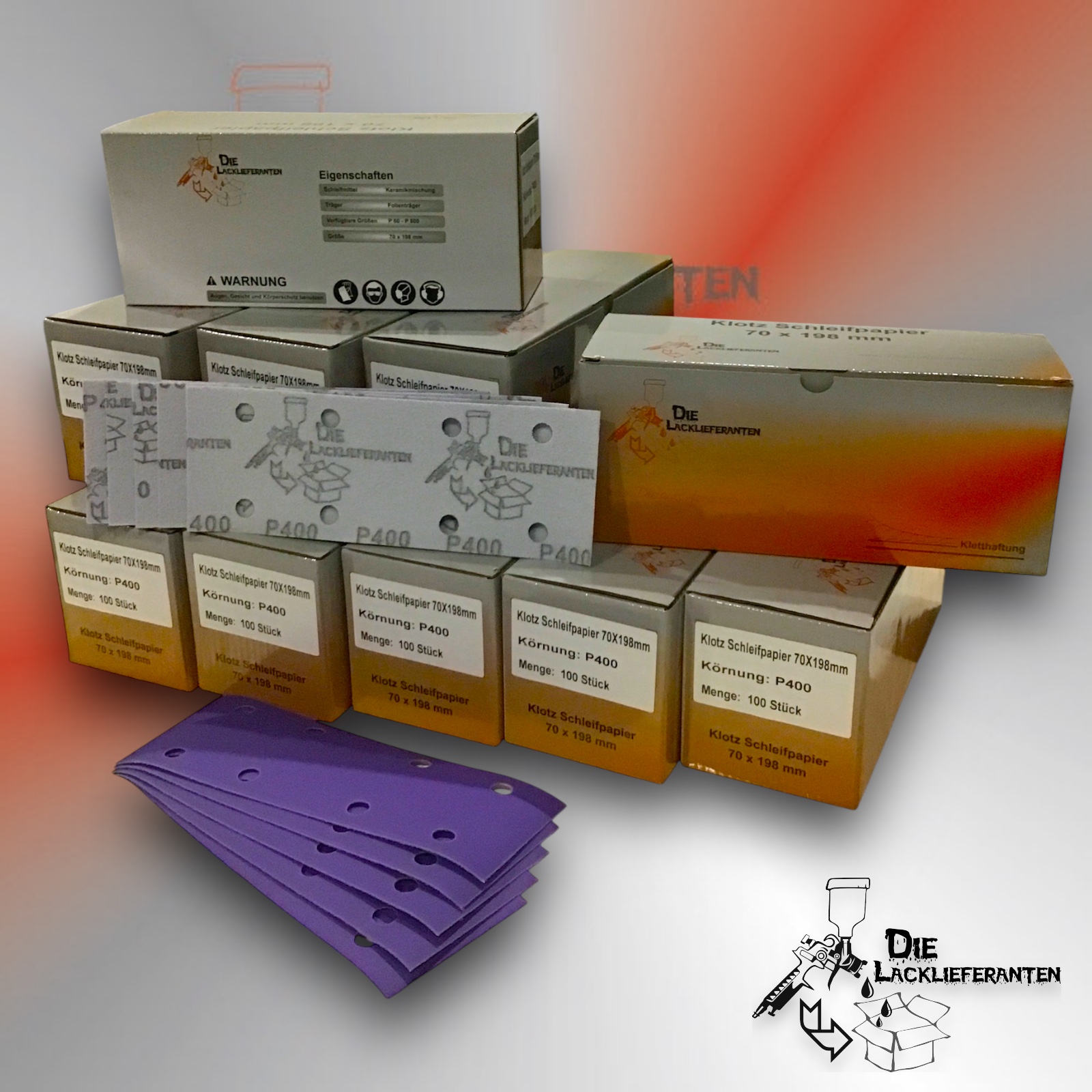 Zzgl. 20% MwSt.zzgl. Versand1000X Klotz Schleifpapier / Klett-Schleifstreifen P400 70x198mm Folienträger, 8 Loch Absaugung, Schleifkorn Keramikmischung #Q22T70X198P400