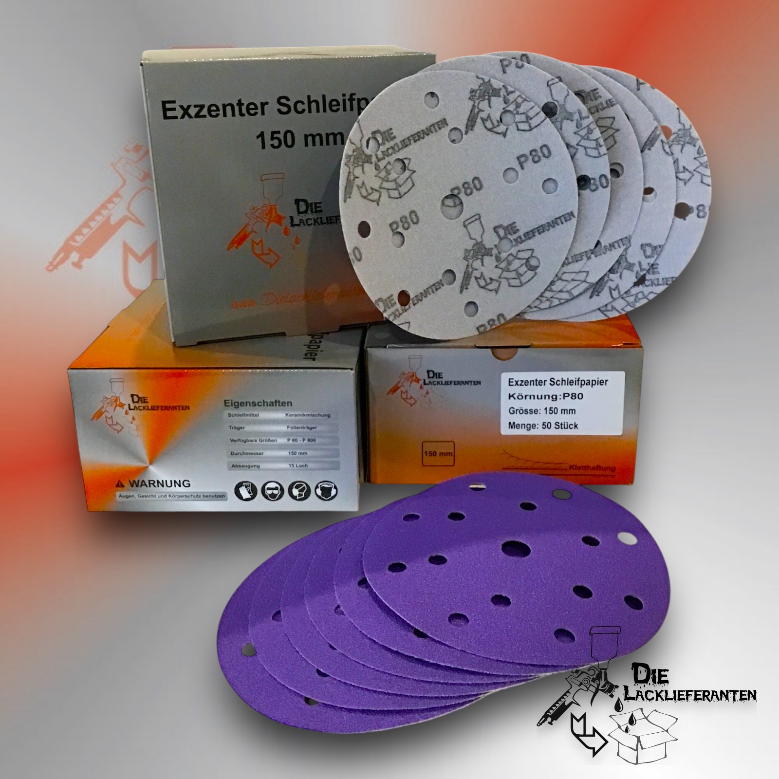 Ursprünglicher Preis war: € 79,50€ 69,50Aktueller Preis ist: € 69,50.-13%500X Exzenter Schleifpapier / Klett-Schleifscheibe P80 Ø 150mm Folienträger, 15 Loch Absaugung, Schleifkorn Keramikmischung #Q22T150P80
