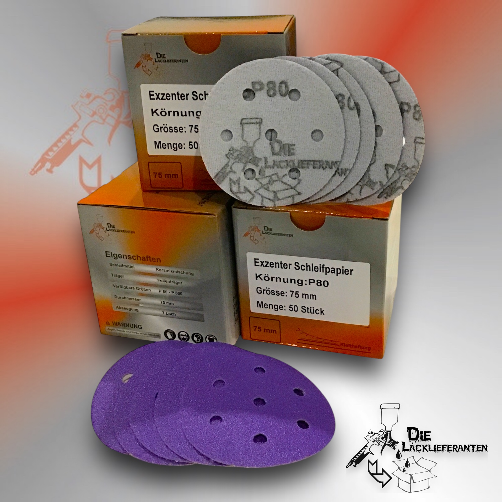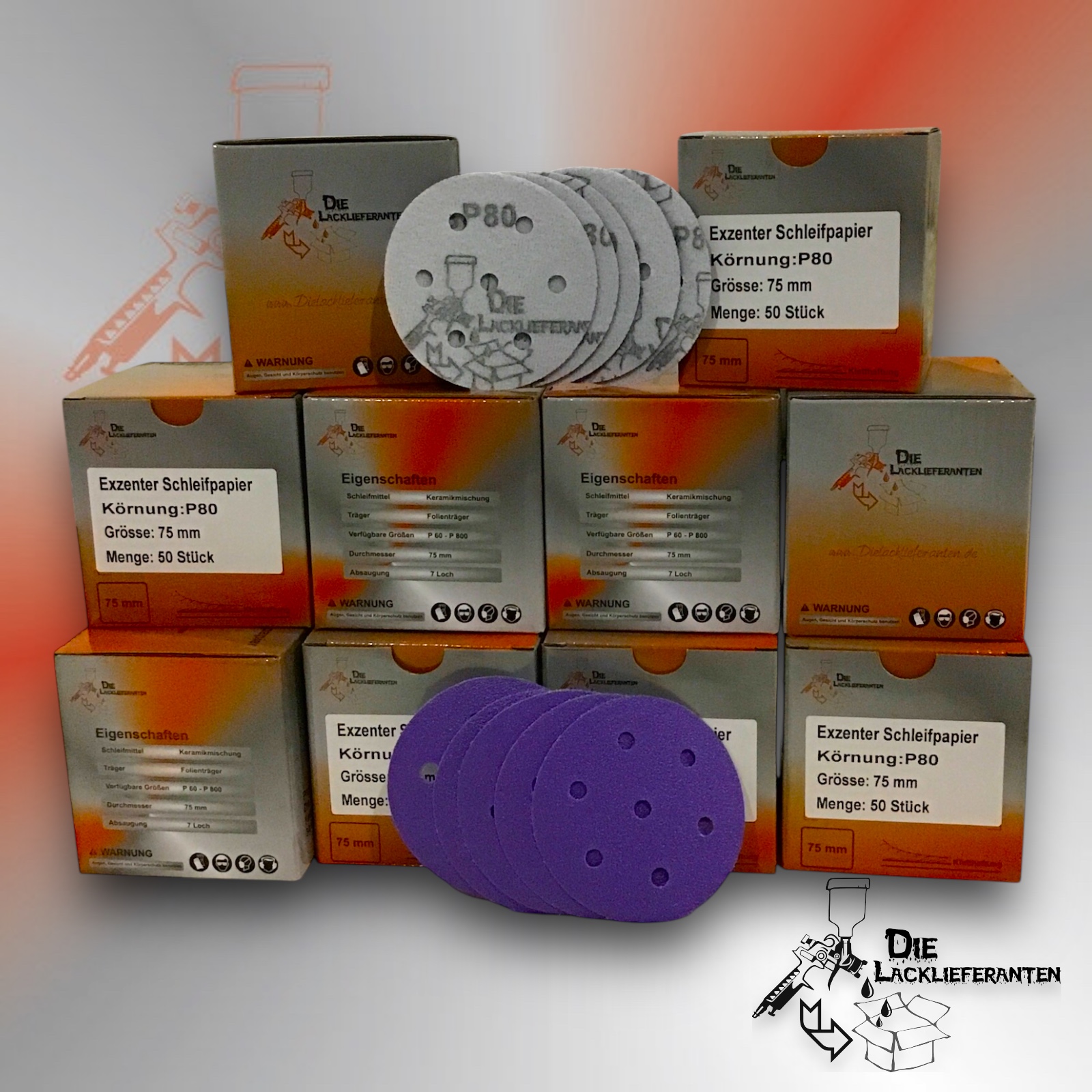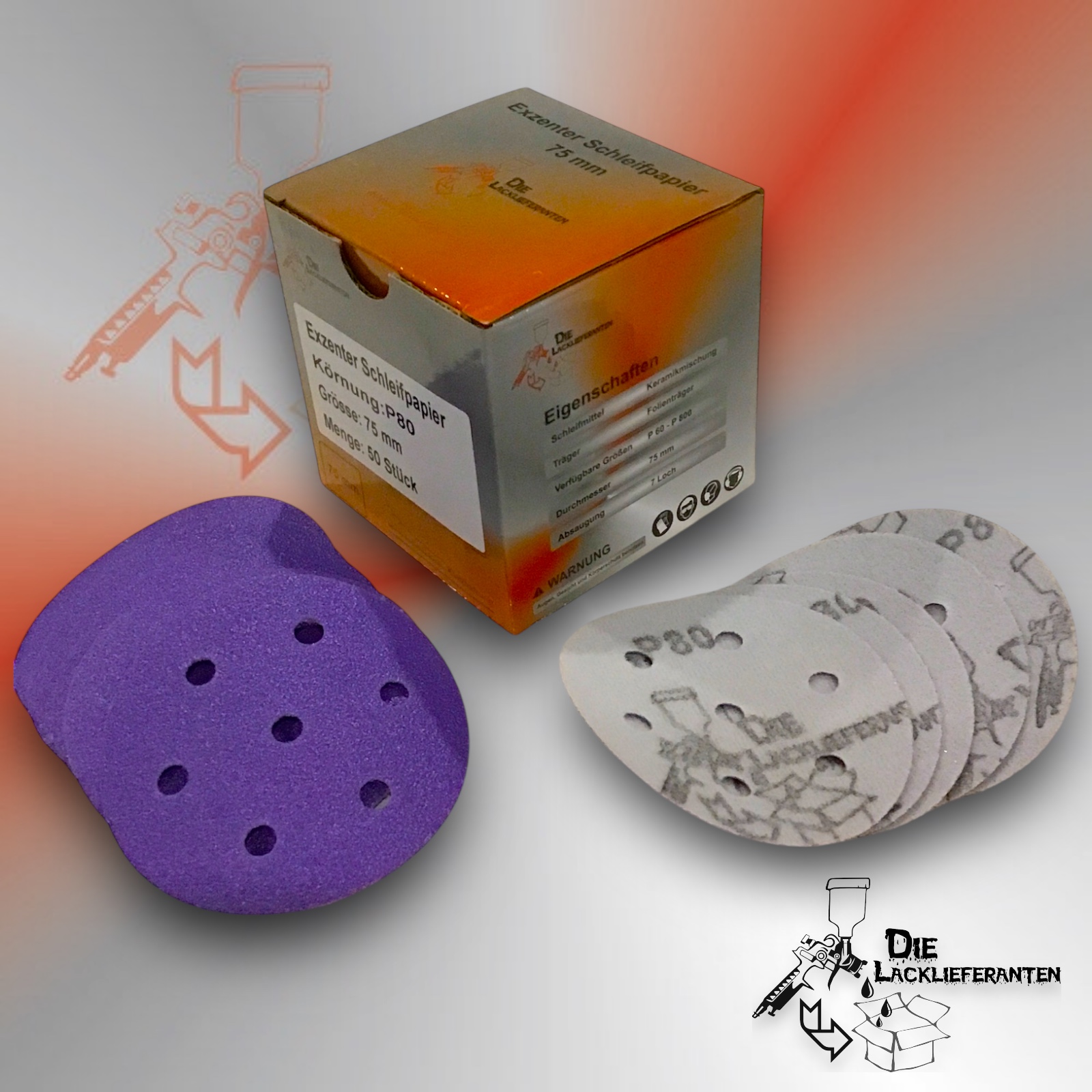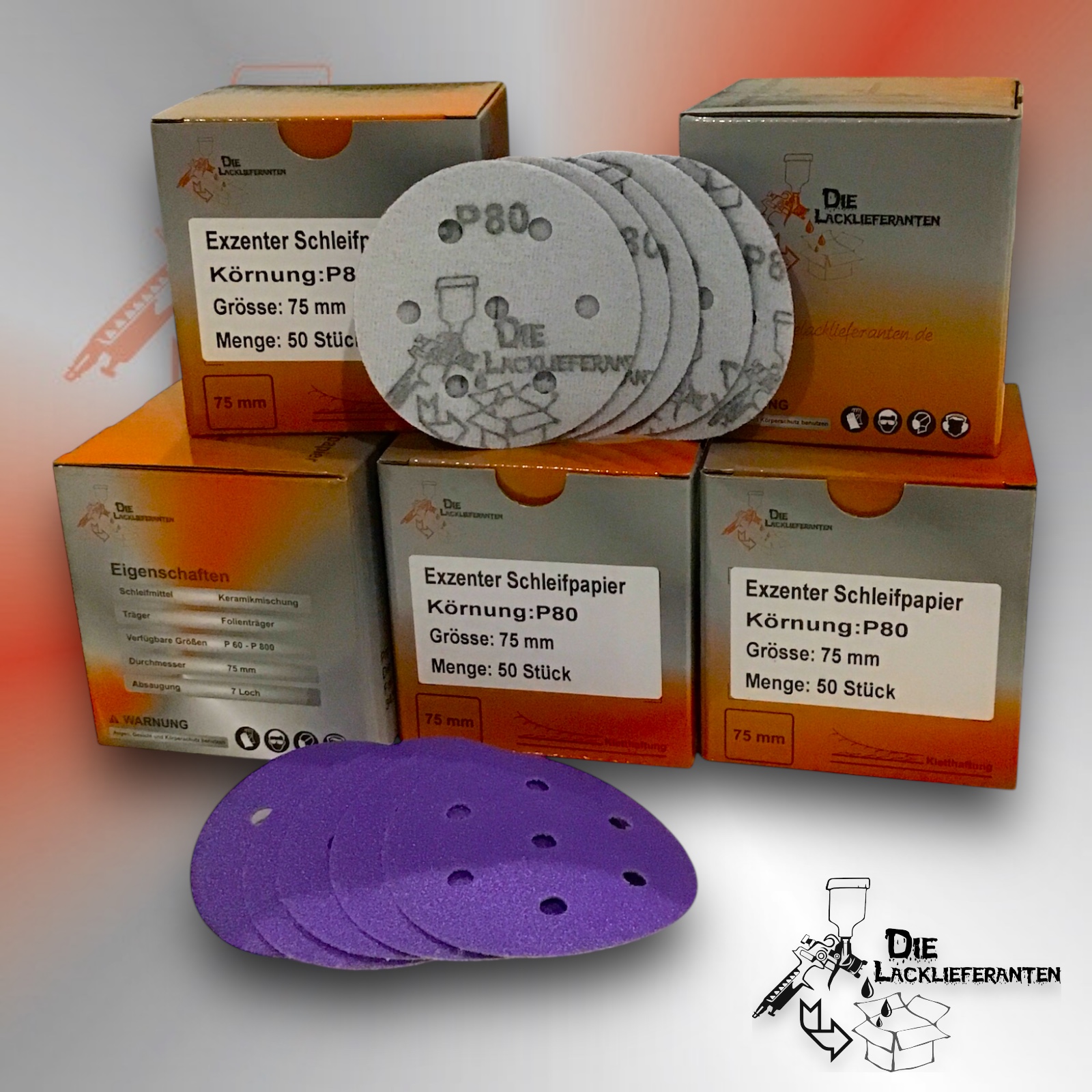 Ursprünglicher Preis war: € 55,00€ 44,00Aktueller Preis ist: € 44,00.-20%500X Exzenter Schleifpapier / Klett-Schleifscheibe P80 Ø 75mm Folienträger, 7 Loch Absaugung, Schleifkorn Keramikmischung #Q22T75P80