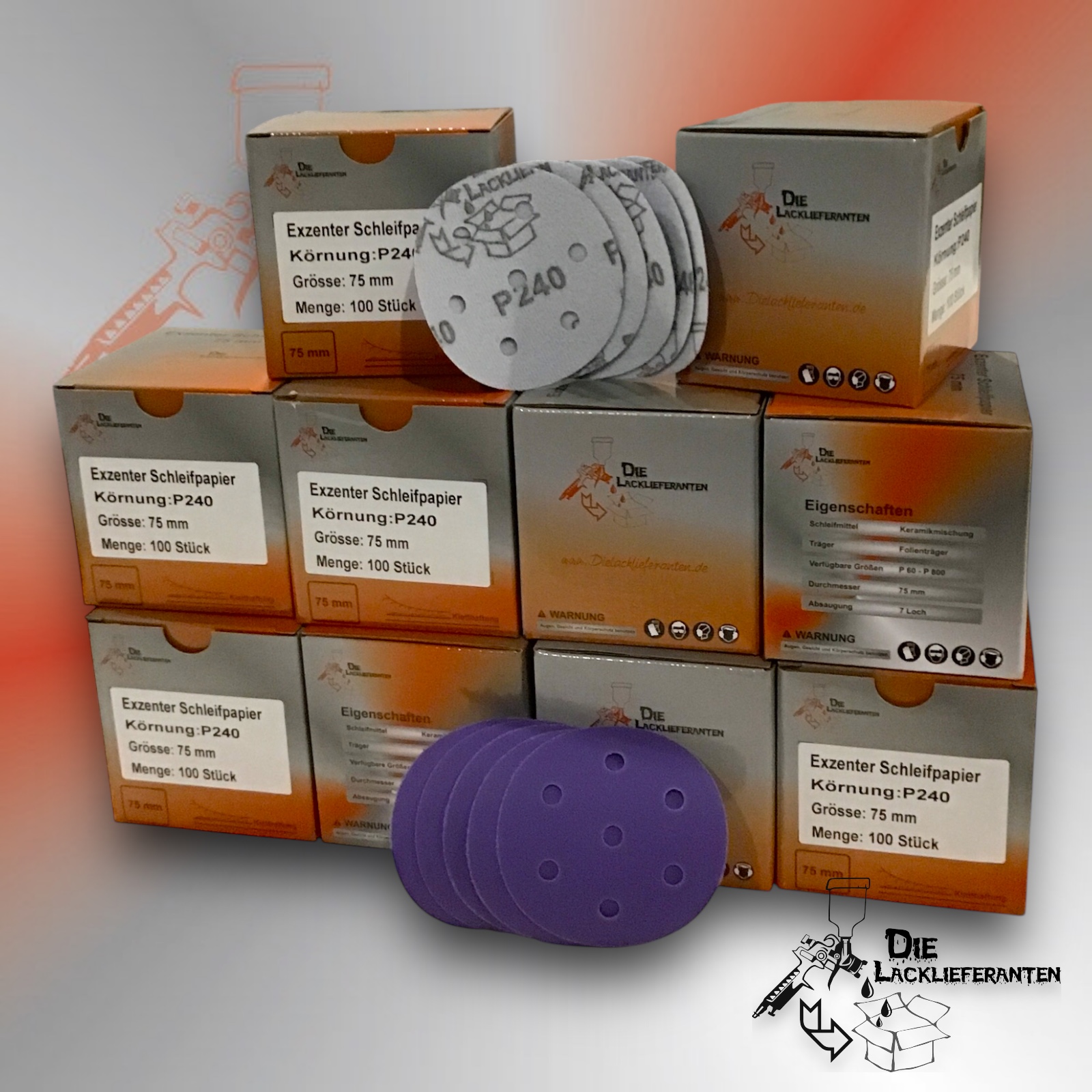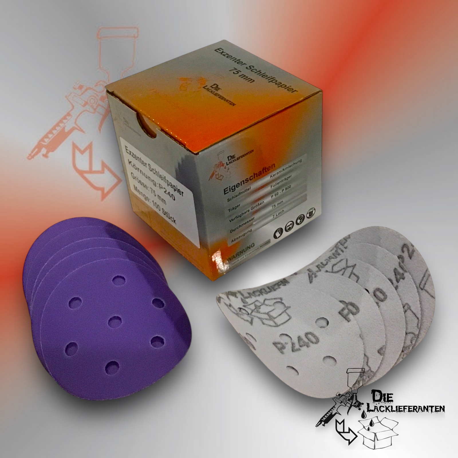 Ursprünglicher Preis war: € 15,90€ 12,72Aktueller Preis ist: € 12,72.-20%300X Exzenter Schleifpapier / Klett-Schleifscheibe P240 Ø 75mm Folienträger, 7 Loch Absaugung, Schleifkorn Keramikmischung #Q22T75P240