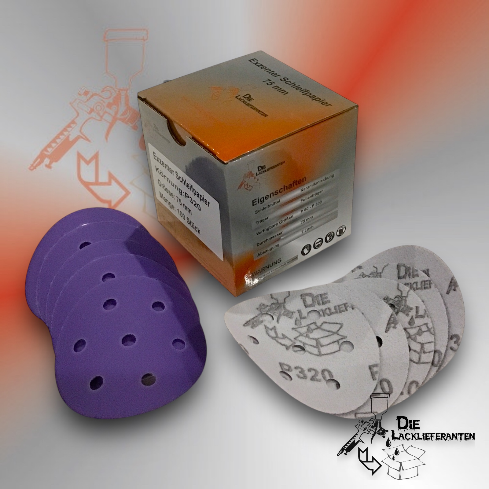 Ursprünglicher Preis war: € 79,50€ 63,60Aktueller Preis ist: € 63,60.-20%300X Exzenter Schleifpapier / Klett-Schleifscheibe P320 Ø 75mm Folienträger, 7 Loch Absaugung, Schleifkorn Keramikmischung #Q22T75P320