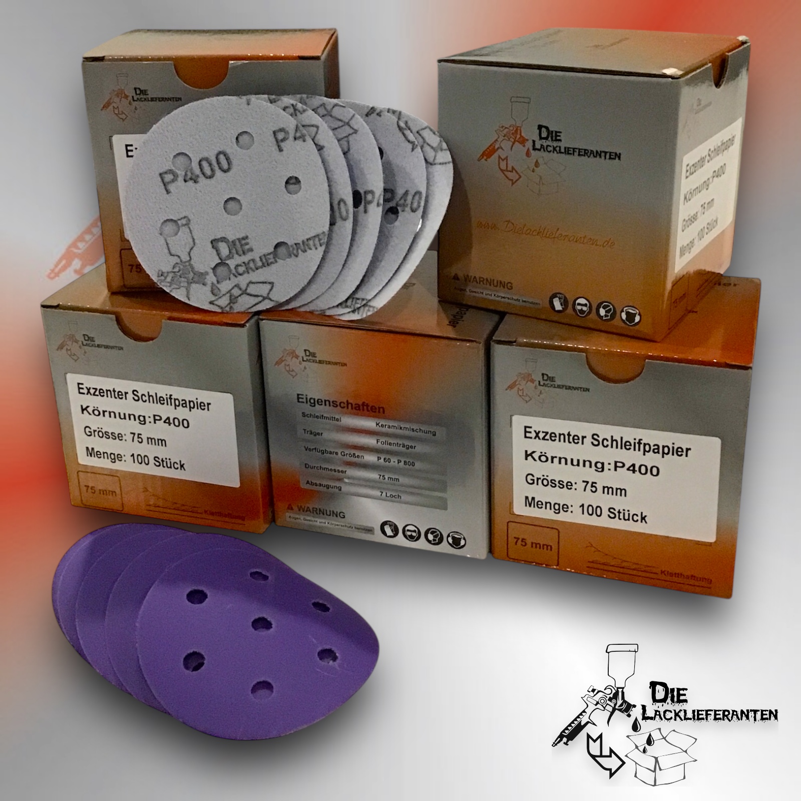 Ursprünglicher Preis war: € 15,90€ 12,72Aktueller Preis ist: € 12,72.-20%500X Exzenter Schleifpapier / Klett-Schleifscheibe P400 Ø 75mm Folienträger, 7 Loch Absaugung, Schleifkorn Keramikmischung #Q22T75P400