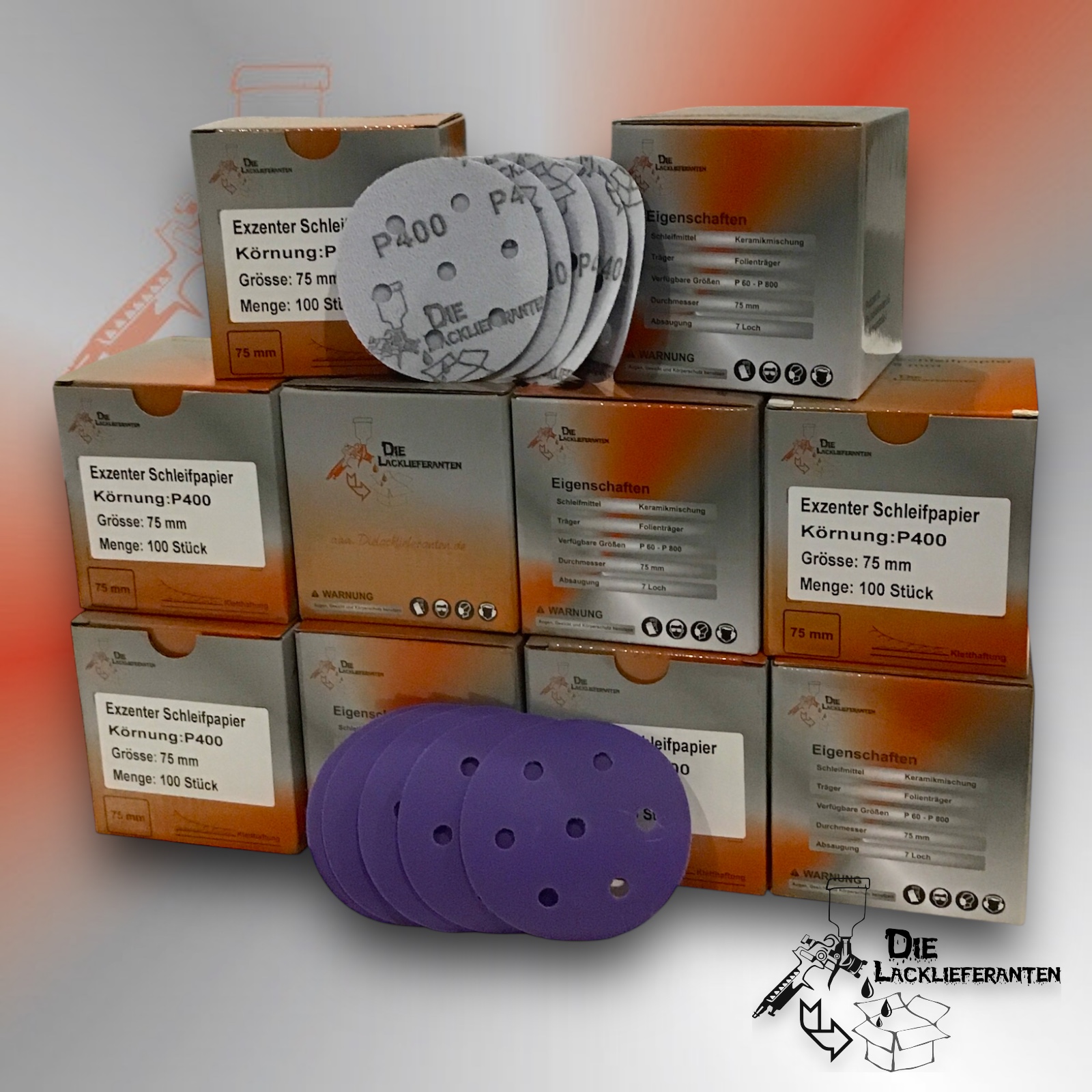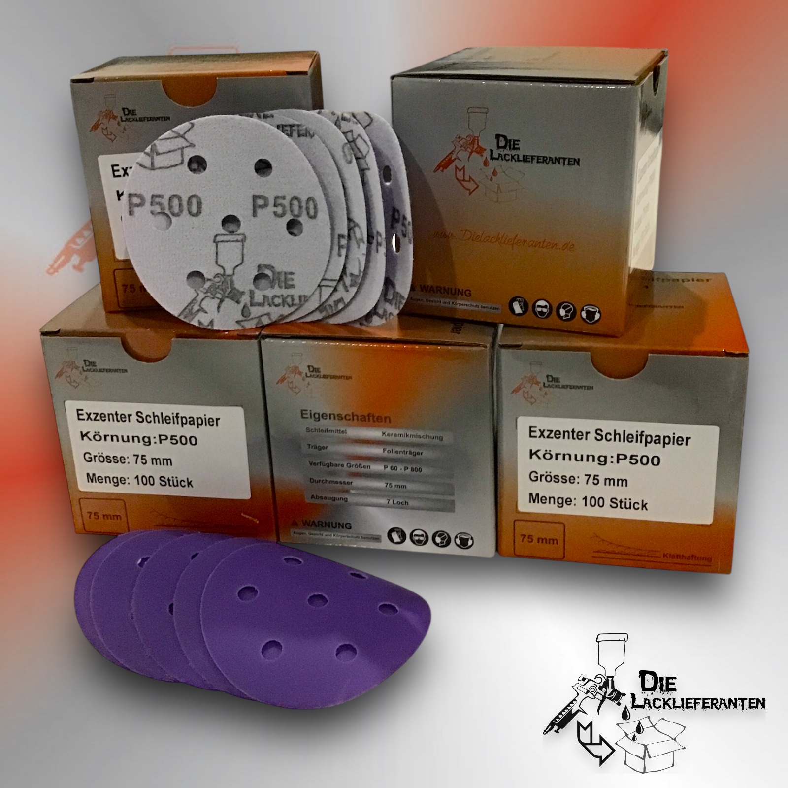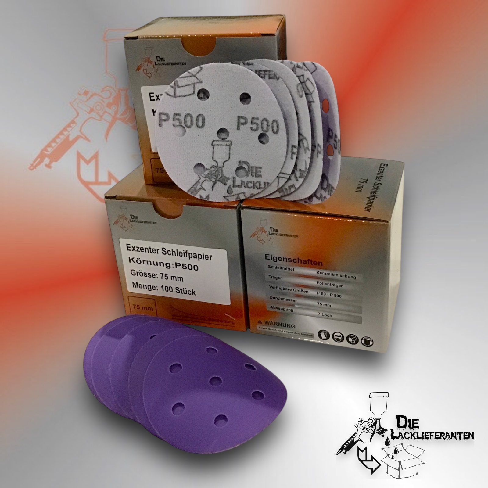 Ursprünglicher Preis war: € 79,50€ 63,60Aktueller Preis ist: € 63,60.-20%300X Exzenter Schleifpapier / Klett-Schleifscheibe P500 Ø 75mm Folienträger, 7 Loch Absaugung, Schleifkorn Keramikmischung #Q22T75P500