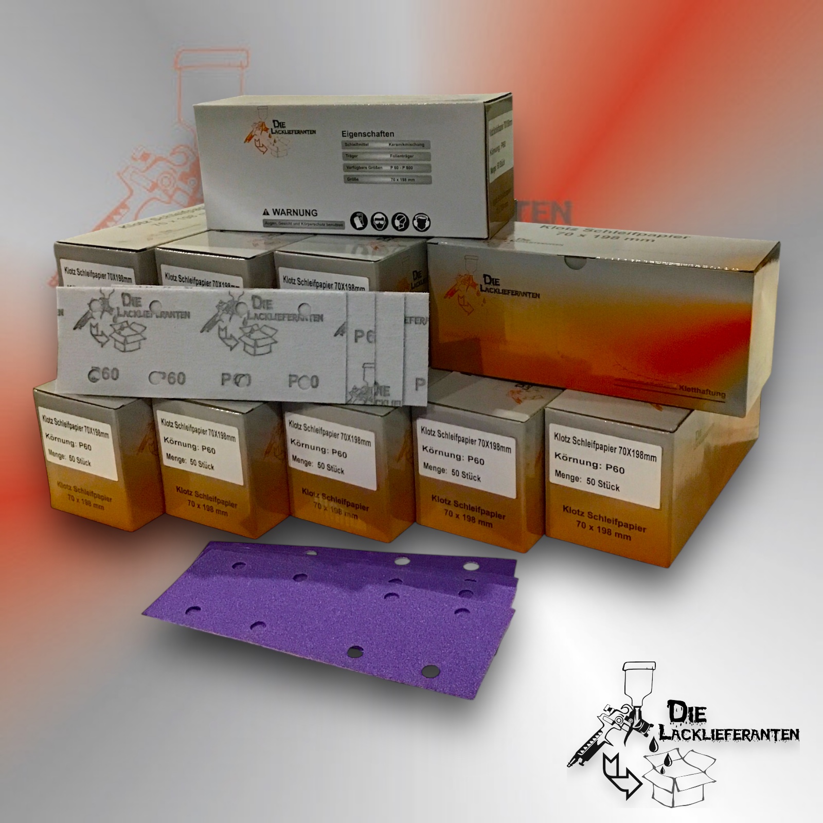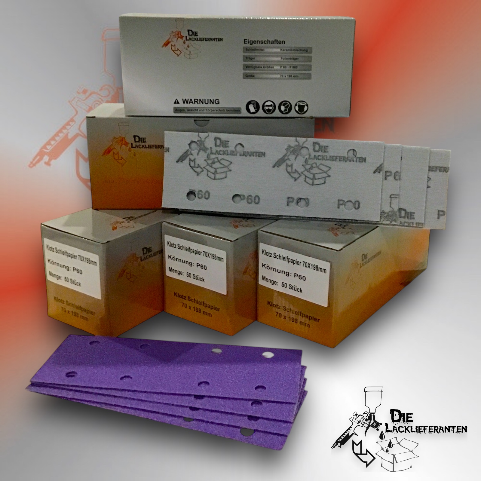 Ursprünglicher Preis war: € 56,70€ 47,70Aktueller Preis ist: € 47,70.-16%250X Klotz Schleifpapier / Klett-Schleifstreifen P60 70x198mm Folienträger, 8 Loch Absaugung, Schleifkorn Keramikmischung #Q22T70X198P60-5